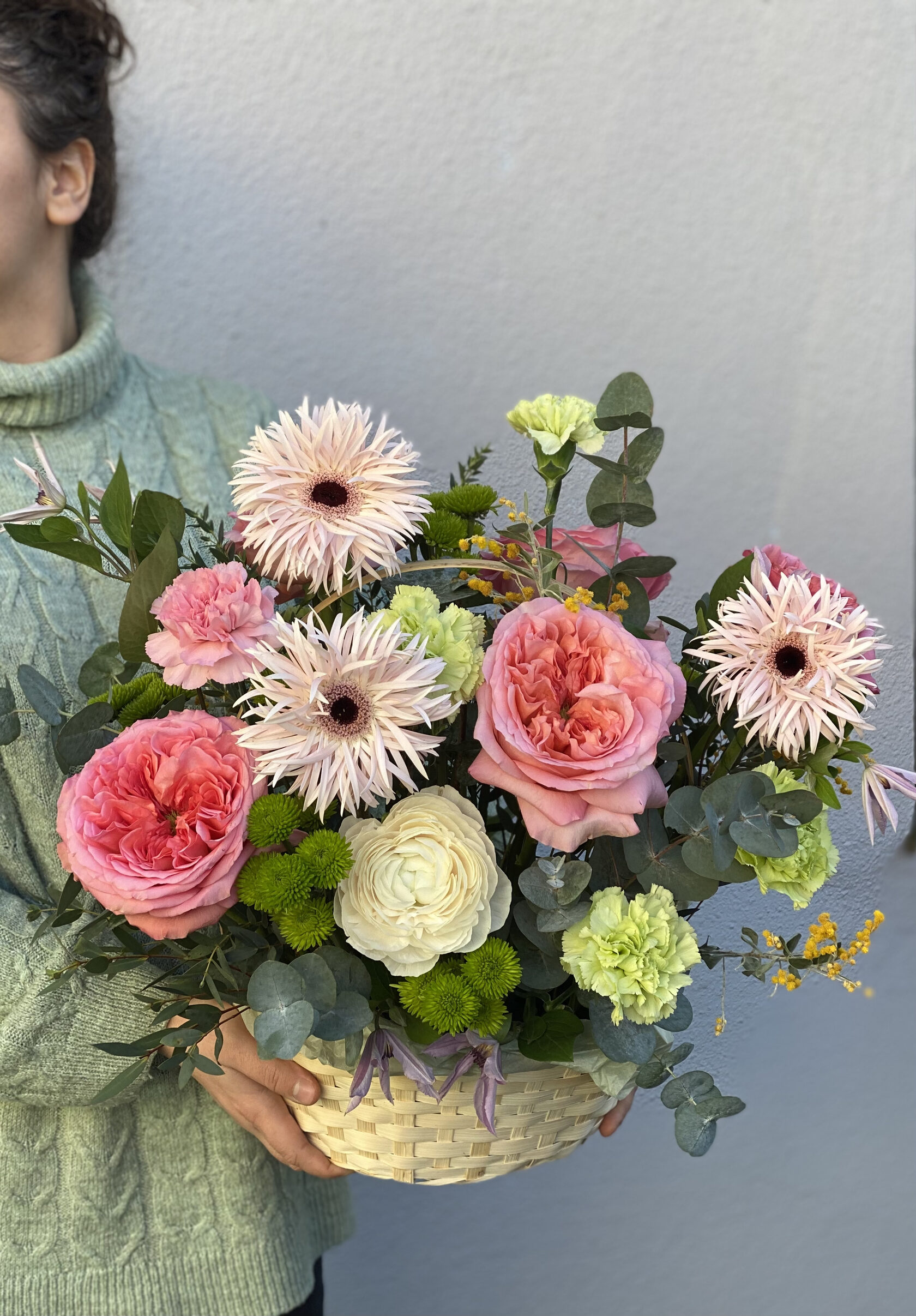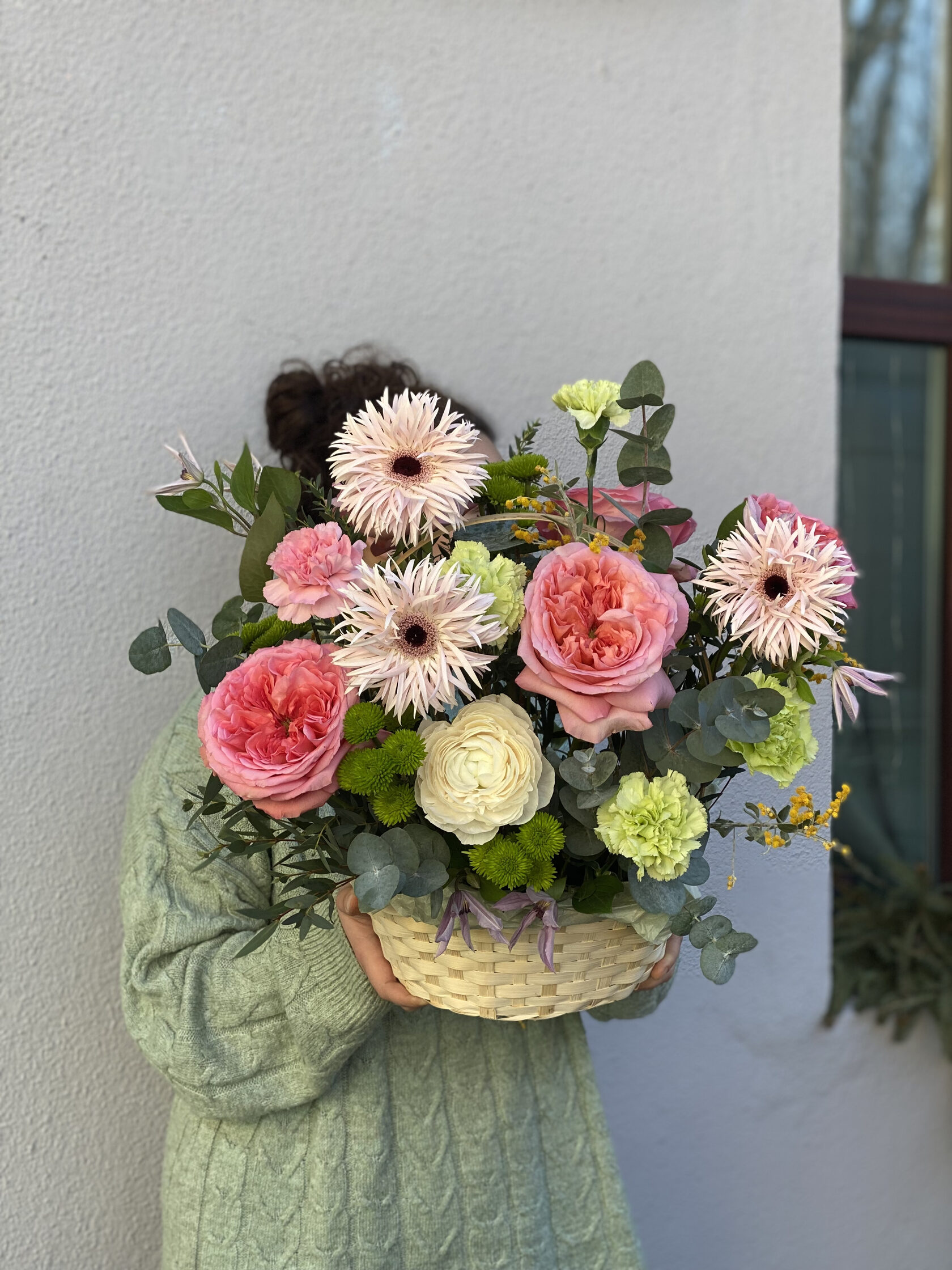 Корзина с гереброй и розами