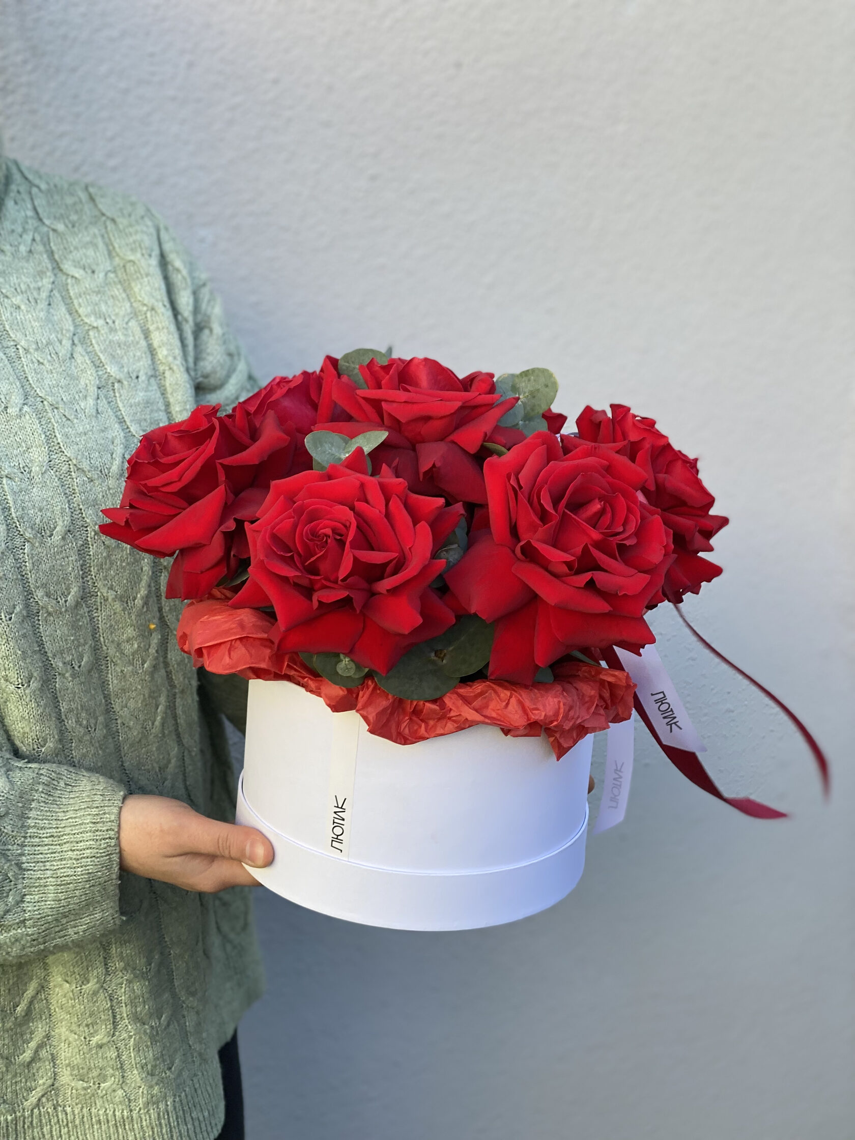 Коробка с красной французской розой